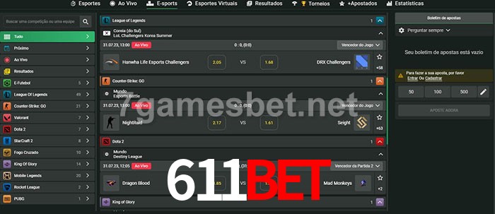 O 611Bet oferece uma grande seleção de opções de apostas em e-sports com probabilidades competitivas